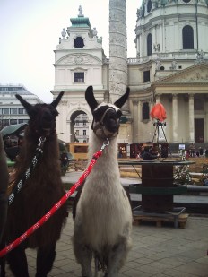 Outside the palace at Schönbrunn they have some of the most incredible Punsch stands (always go for the Vanille-Himbeer), the Rathaus Market has amazing waffles, crepes, and a chocolate fountain, and Karlsplatz has… well, llamas and few bales of hay for kids to roll around in… No, I don’t really get it either, but I won’t lie – it does look like fun!