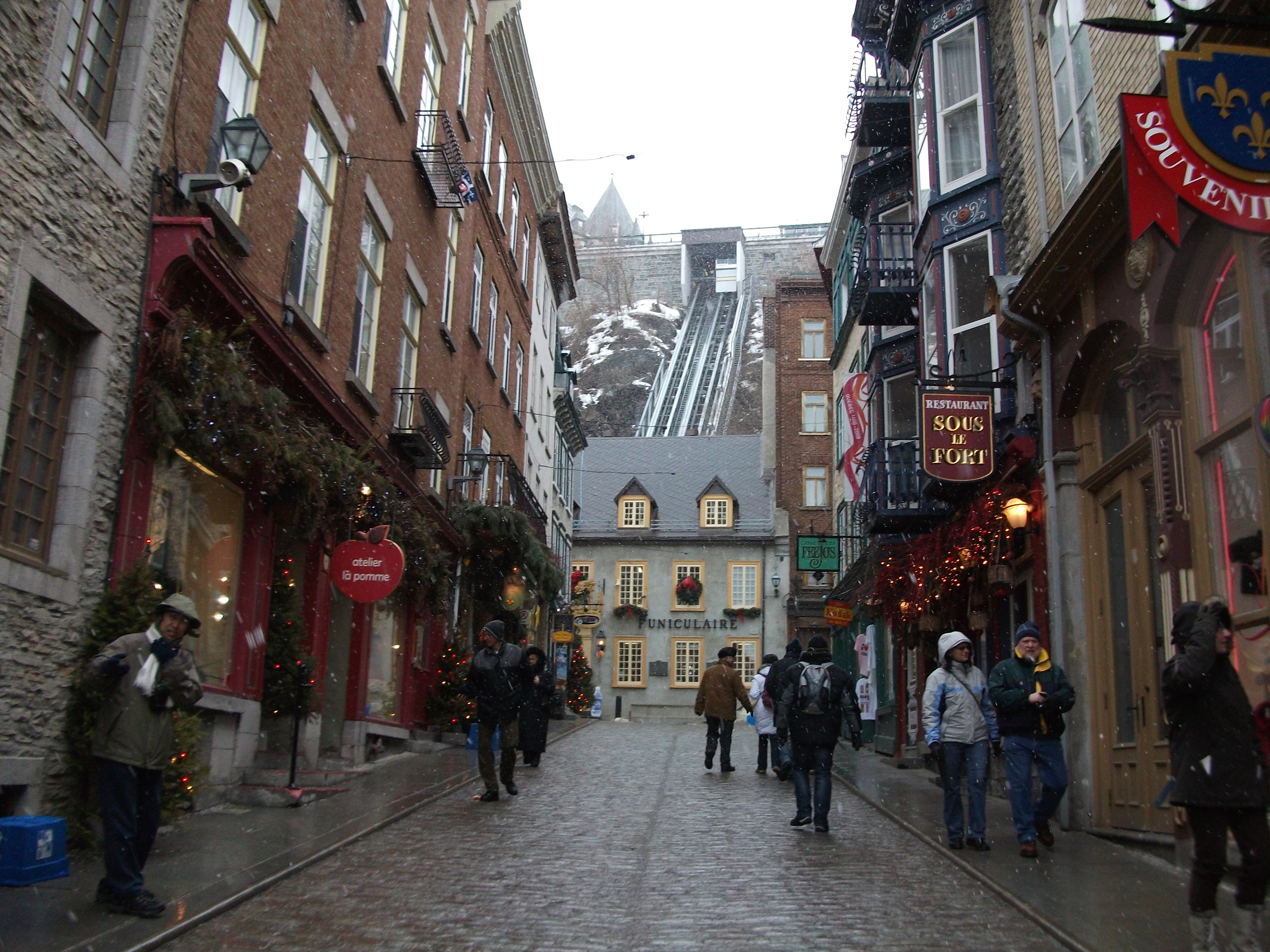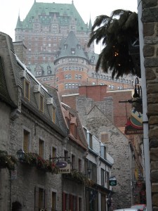 We got picked up from our Latin Quarter hotel at 7.15 am and there were only 11 people on the trip – fantastic. The coach driver acted as tour guide on the journey- switching easily between french and english. It was amazing to hear the ease with which he could move between both languages. The snow kept falling on our travels and by the time we got to a service station stop there was over 1.5 feet of snow on the ground. It felt like Christmas or that we had travelled out into the wilderness. With every mile towards Quebec City it seemed as though we were driving back in time, to a previous era. The houses changed dramatically from wooden huts and timber frames to older stone builidngs, cottage-like.