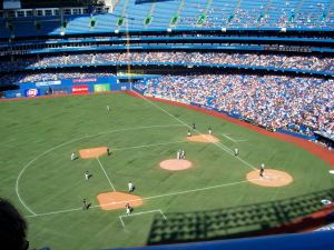 Toronto Blue Jays vs New York Yankees at the Rogers Centre Toronto – A prize for anyone who can guess what I am on about . . . have you guessed yet?! . . . I give you watching a 4.5 hour baseball game sitting in a packed stadium in central Toronto with the temperature at 28 degrees (prizes are in the post, keep checking they will arrive eventually). Not forgetting the smell of hotdogs wafting in the breeze with the CN Tower literally towering over the stadium and aeroplanes doing acrobatics above us. Madness. Bewilderment. A wild desire for a cheap and nasty hotdog. And a general sense of “I don’t understand the rules or what they are doing at all”. But all in all a great initation into Canadian baseball worshipping.