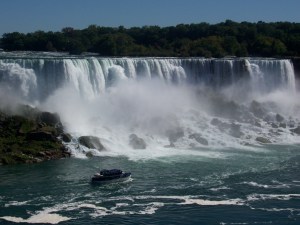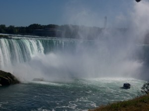 Us Exchange students swarmed off the coach like ants and made our way to view the Falls (i.e. just head in the direction of the loud, roaring noise). I didn’t realise that there are actually two Falls, one on the American side and the other the Canadian. In the left hand corner for the Americans we have the aptly titled ‘American Falls’ and in the right-corner we have battling it out for Canada, the one, the only, ‘Horsehoe Falls’ (so named because of the shape and not as egotistical as the Americans. Can you tell the Canadian/American rivalry has started to rub off on me?!) As you might have guessed there is much controversy and debate over which side, Ontario or Buffalo, New York is the most stunning. Hands down the Canadian – no bias, honest.