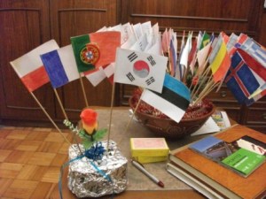 We met other Couchsurfers in Fernando’s house: Bok, a Korean guy doing a student exchange in Barcelona and Michell, a crazy French traveller who has been on the journey for two years now and is going to live like this at least three years more. When we went for a dinner, we had a stand with mini-flags of our countries:
