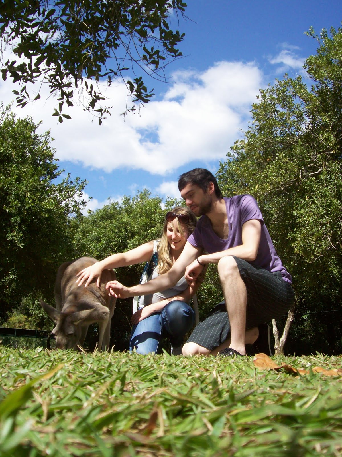 We also saw some tigers in Asia and they had keepers just sat in the cage with them! There were red pandas as well. We then went back to the koala enclosure where we saw the joey, then through another kangaroo enclosure. I had bought some food earlier in the day so we got to feed the kangaroos then! They eat really slow so the food lasts for ages. Sometimes they would hold onto your hands to get the food. One time 2 kangaroos came over at the same time and I didn’t know what to do so I just held out the food in the middle and one started eating it. The other tried to eat some as well though and the 1st kangaroo did not like that..I may have started a small fight :s. While we were there, there was a small child chasing a kangaroo and he kept hopping away from her every time she got to him and tried to stroke him. It was quite funny :).