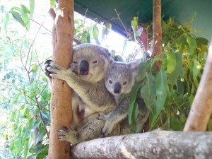We then found the kangaroos, but you don’t just look at them, you get to go into the enclosure and feed them and stroke them! They are so much softer than I thought, just like really big rabbits. But we couldn’t see anywhere to buy any food, so we couldn’t feed them then. The kangaroo enclosure led into the koala enclosure -where you also walk in amongst the animals. There was a koala sleeping up one of the first trees we saw. I was very excited about this, and then we walked around the corner and it got even better! There were loads of koalas on stands and you were allowed to stroke them! They were also very soft. We came back here again later in the day and one of the koalas had a joey on their back! You weren’t allowed to stroke it though as the mother would probably attack you. So, so, so cute though!