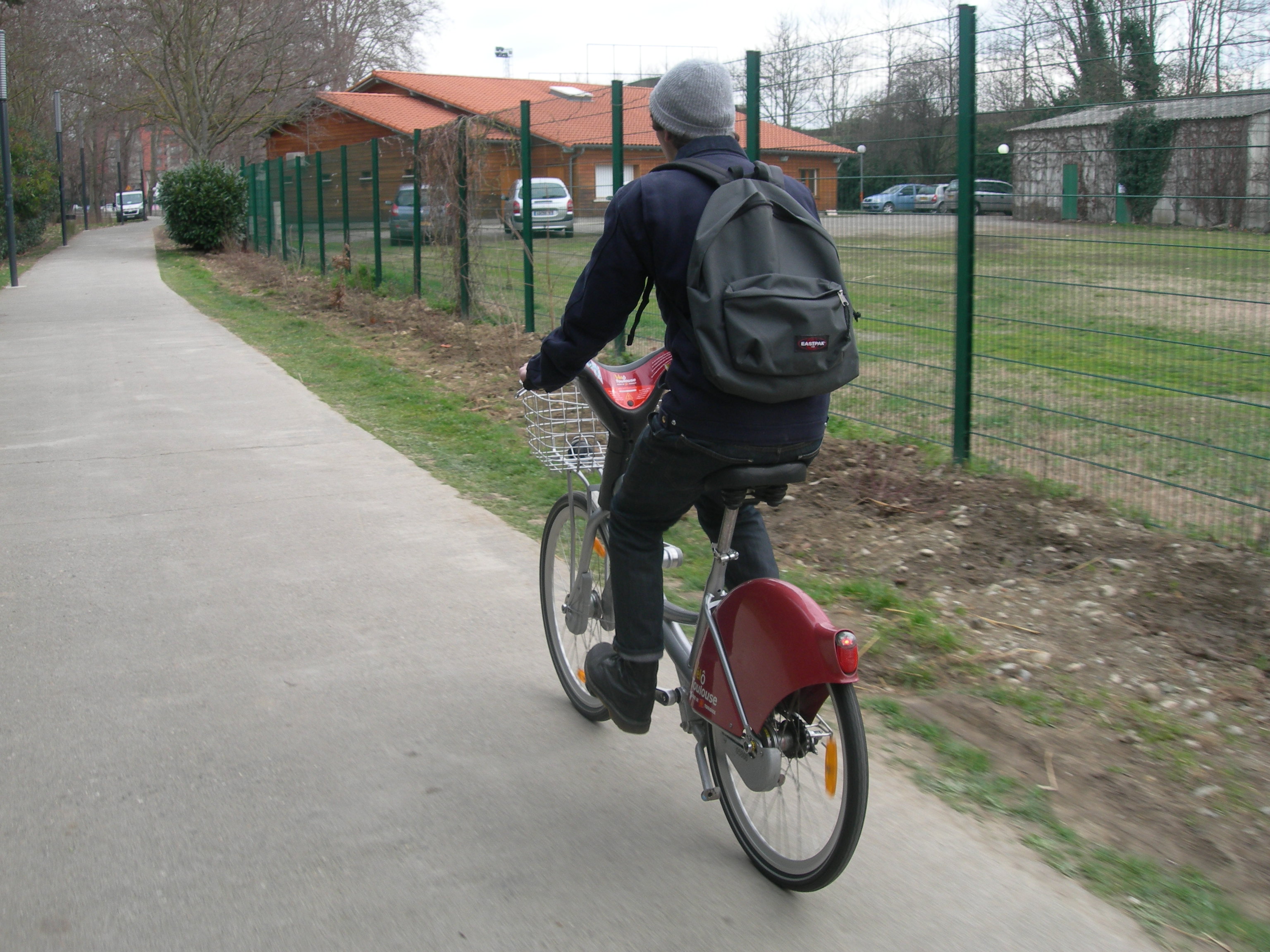 The next day we hired two bikes from the Velo Toulouse service which is similar to the system that is being introduced in many major cities. You go to one of the many bike stations around, you pay a bit, you ride a bike around then you put it back. It costs €1 for a day pass then a sliding scale depending on how much you use the bike across the day, although its free for the first 30 minutes. Here’s what its like