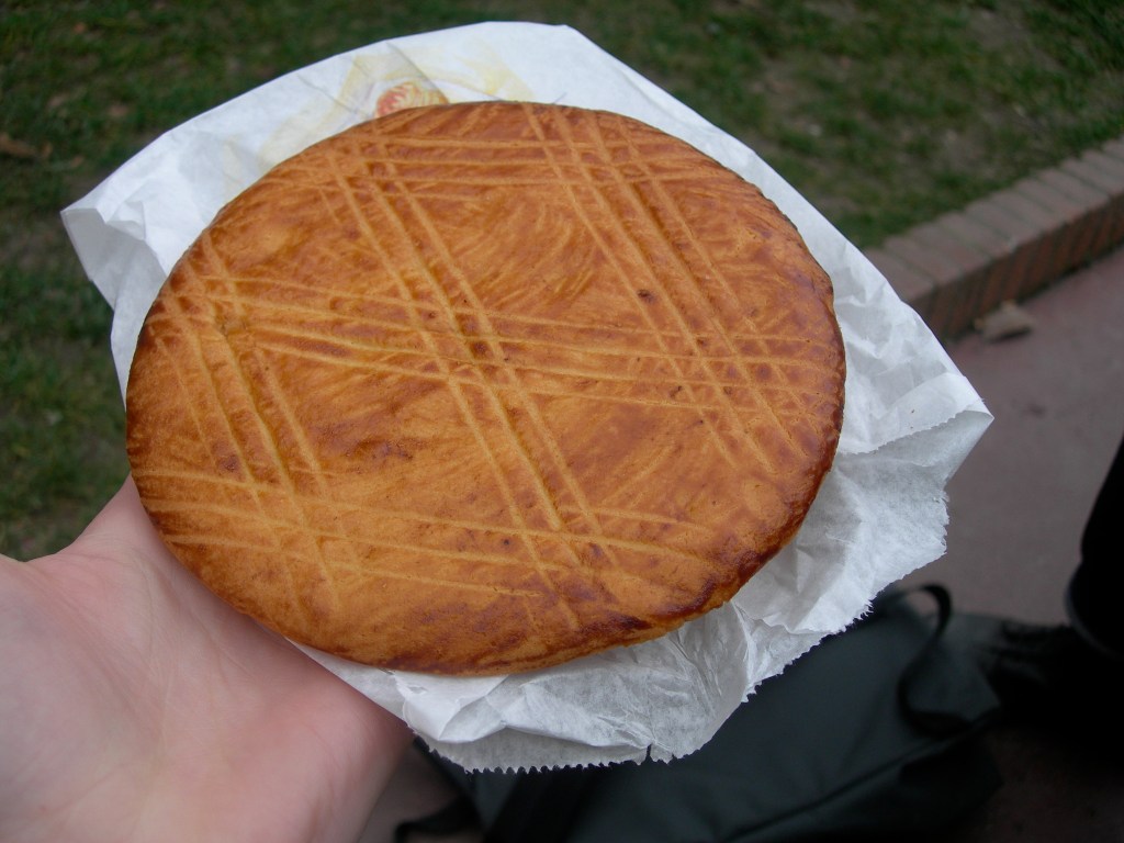 This pastry is surely proof of the existence of the christian god. When I look at this Jesuite, named after the now unfashionable jesuit’s hat that its shape imitates, I can no longer ignore the knock at the door that has been following me my whole life (the door being my faith and the knock coming from god himself). When I look at something so complicated and perfect as this pastry with its sugar dusting, almond flakes and frangipane filling, I can no longer believe that something so perfect just happened by chance. It cost €1.50. 8.5/10.