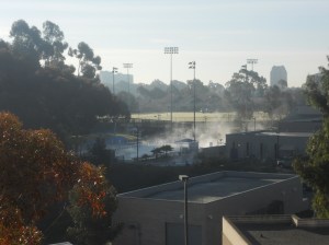 Until last week I was completely ignorant of the Tuesday market on campus. Having now sampled what it has to offer, I shall say that although it was a tad pricey, there is no doubt that the food on offer was very good indeed! I had a Strawberries and crème crepe (“with real cream?” my mother asked. “Don’t be stupid, this is America!” I replied) which was $6, and the savoury ones were $9, not cheap. I now speak even more glowingly of the California crepes place in downtown SD which, besides having many delicious offerings, now looks very reasonable indeed!