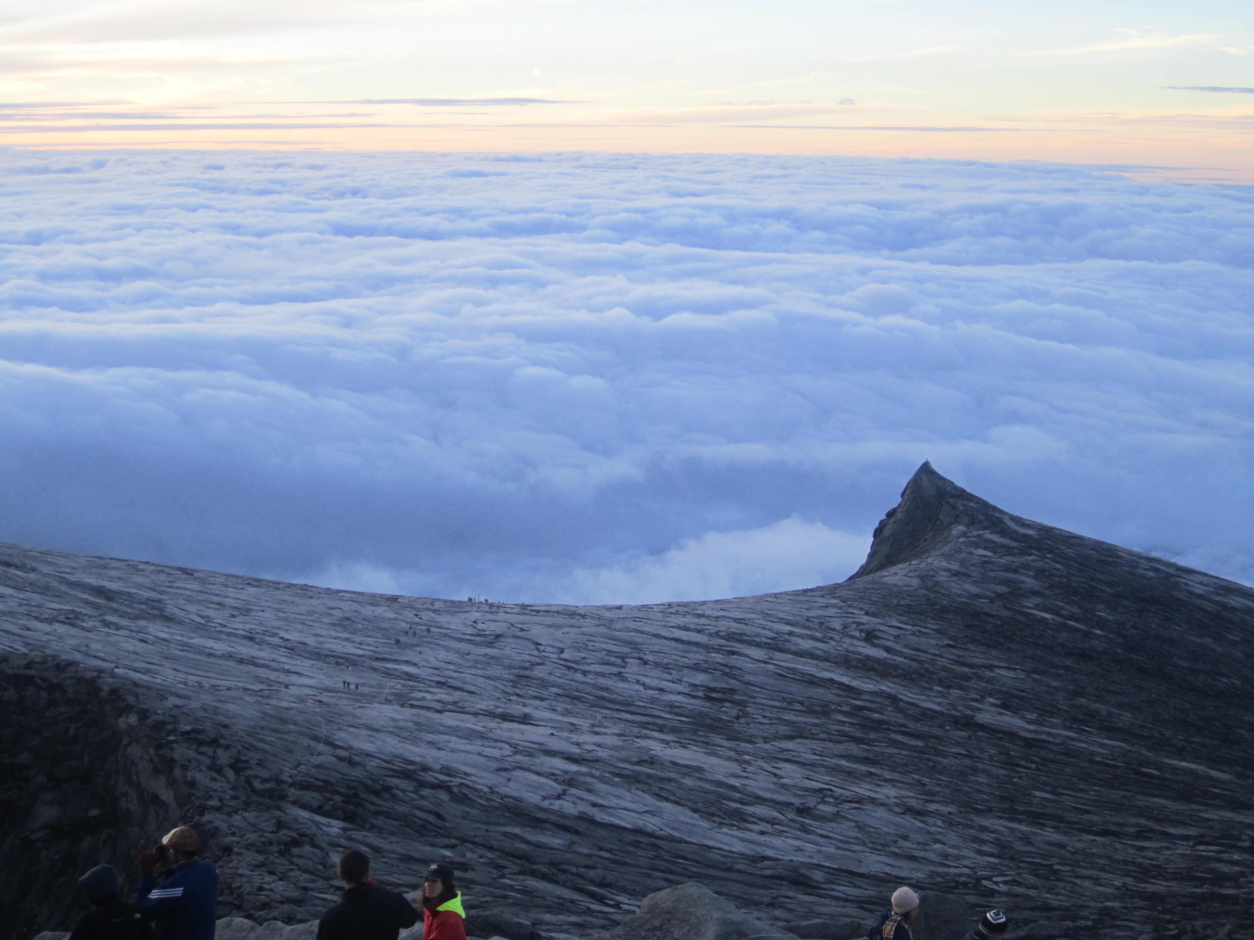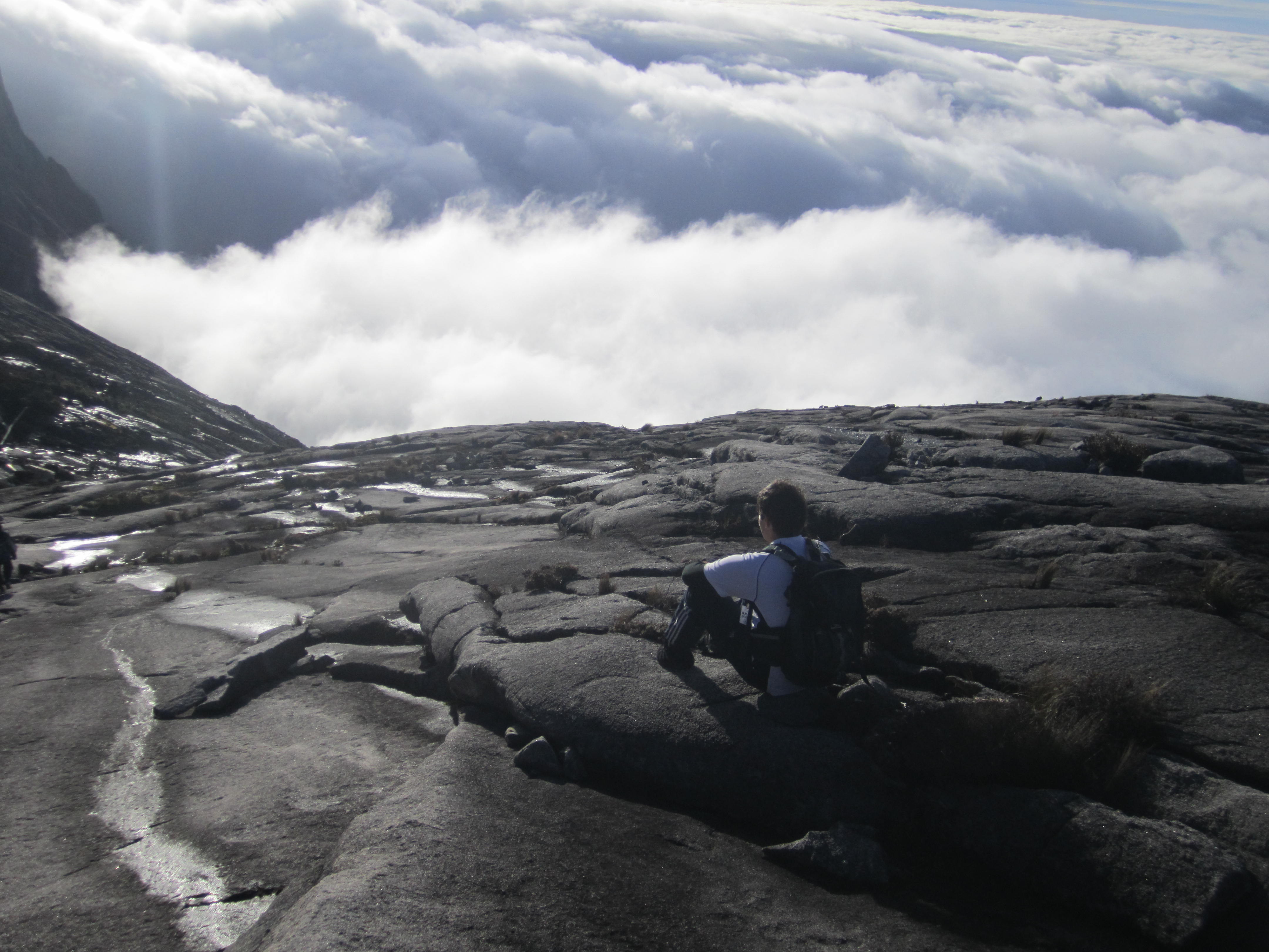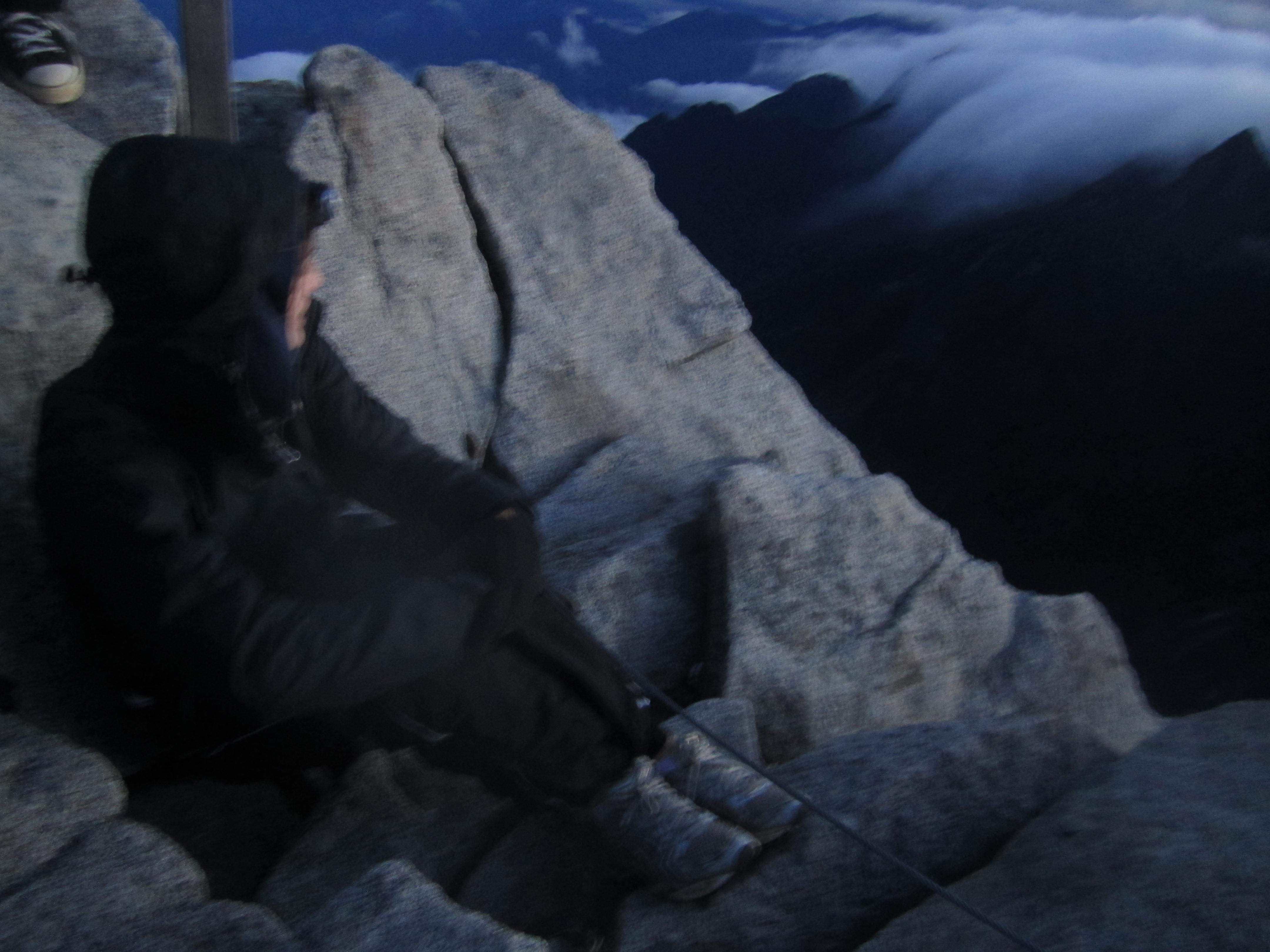 We reached the “halfway house” by mid-afternoon, where they served us an amazing all-you-can-eat buffet – all sorts of meat, bbq, curries, asian dishes, fruit, soups, desserts, everything! We took some time before dinner to nap, much needed since our muscles were aching. Dinner was another of these amazing buffets, and then straight to bed again around 9.30pm because the hardest part of the hike was coming up in Day 2: reaching the summit. We had to get up even earlier on Day 2 – at 2.30am in order to have breakfast and leave by 3.30am. The terrain up to the summit got a lot harder – we had to climb up lots of rocky terrain, over lots of rocks, and use ropes to haul us up. However, after 5 hours, we eventually reached the summit, and it was breathtaking. We spent a while just taking in the views: I couldn’t believe that the clouds seemed miles below us, how high did that mean we actually were? The summit was just over 4500m, and absolutely freezing!