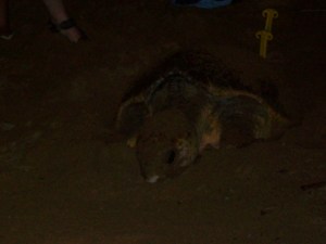 This cutie of a turtle is laying her eggs on Mon Repos Beach. See here.