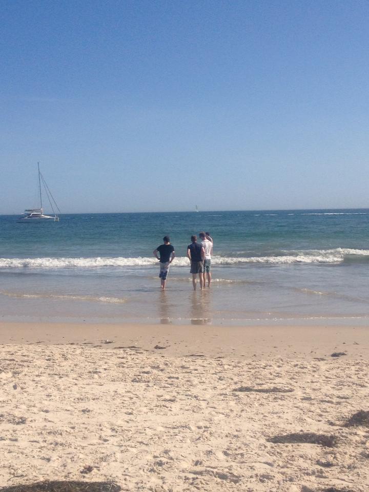 Spring is finally here, we celebrated its arrival by promptly heading to Henley beach. We had a great day throwing a ball around and splashing about in the water. Well at east most of us did; my friend Iz decided that the best way for her to enjoy the beach would be to sit in a black dress and tights and do some tutorial reading…
