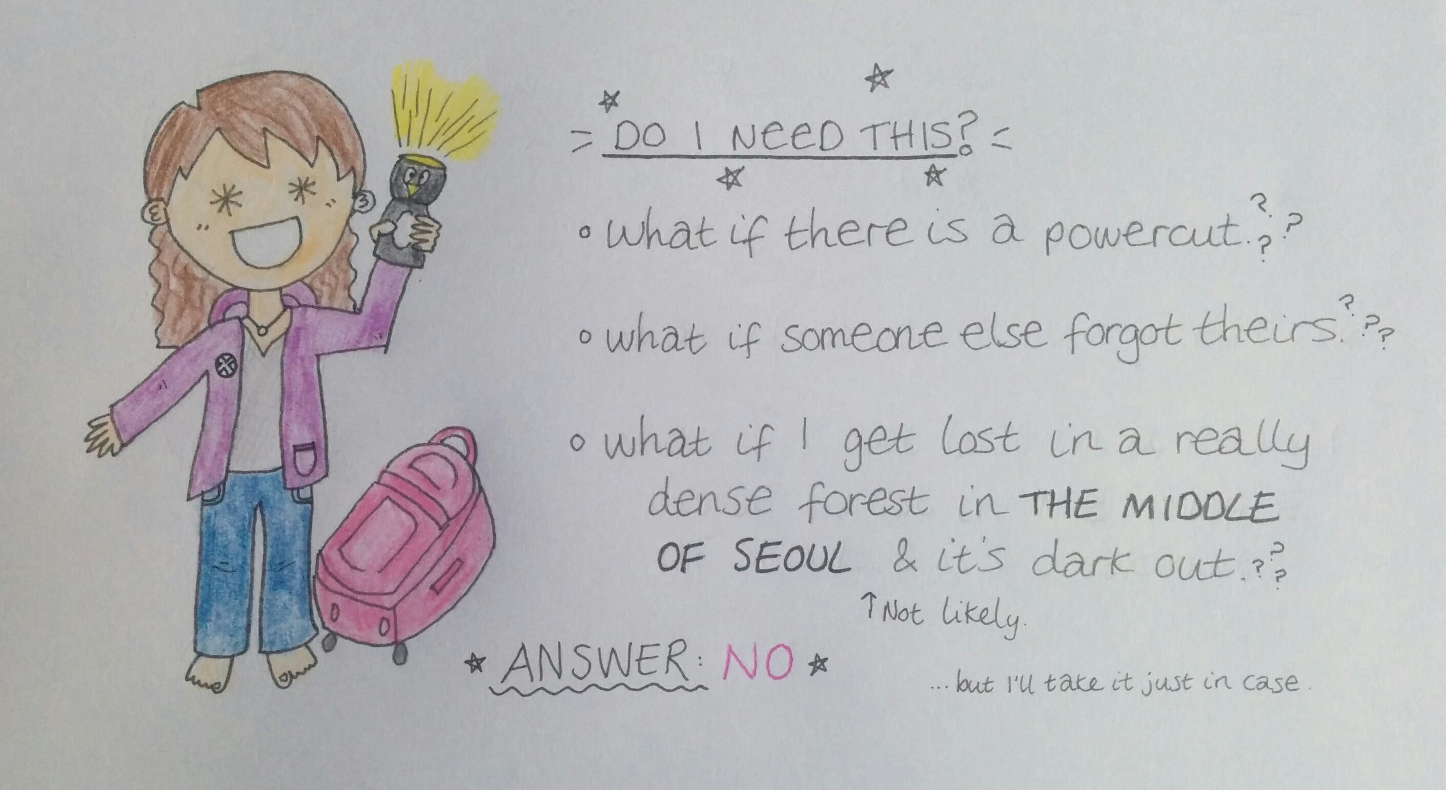 I can buy toiletries when I’m there, and there are services for washing clothes at the accommodation, but I have the same trouble every time I pack in deciding what ‘extras’ to bring.