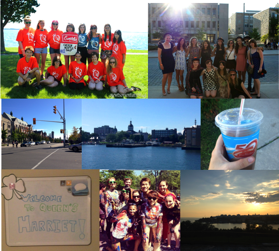 L – R: Newts group! · All dressed up for our tamming ceremony/ Sunny day on campus · Kingston waterfront · The beginning of a beautiful love affair/ Welcome sign courtesy of Jaclyn · Paint fight aftermath · Gorgeous sunset view from our semi-formal at Fort Henry