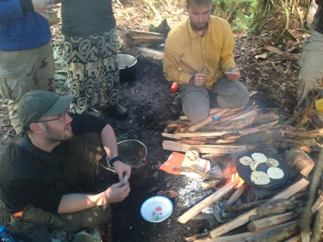 Making tortillas with Honduran guides during jungle training. Tortillas are staple food in the country and is a must-have in every meal. We managed to make over two dozens tortillas for our guides in one afternoon!
