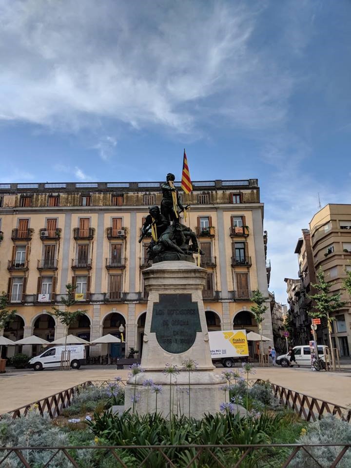 This image conveys the current split in Cataluña right now with regards to their recent independence referendum. Girona is in the heart of Cataluña and has since renamed their “Plaza de España” to “Plaza de independencia”