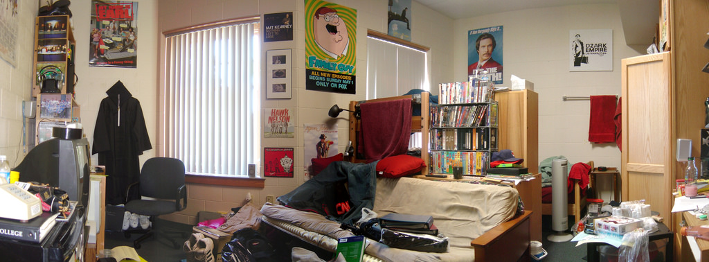 Dorm storage space is always questionable, so why not expand it in your way. Buy drop-down sections that you can hang from a coat rack. Invest in boxes to hide under your bed, which may hold notes from last semester that you’re “not sure you need but want to keep just in case” or clothes you might wear for the unexpected cooler days.
