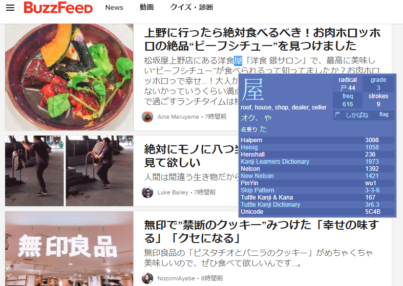 There are so many ways to access new vocabulary! Websites like Japan Buzzfeed, where the content is secular and often self explanatory, are great left untranslated. A chrome add on Rikaikun is a quick way to clarify any unknown kanji- simply hover your mouse over the kanji and a detailed translation appears!