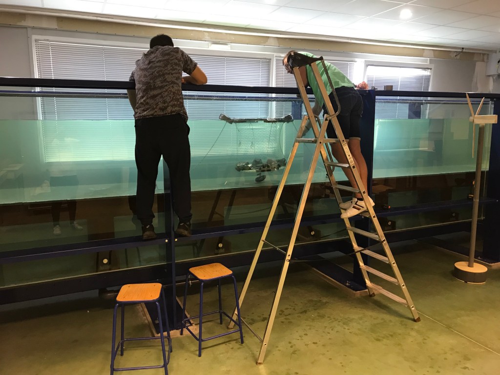 Testing the model in a wave flume!