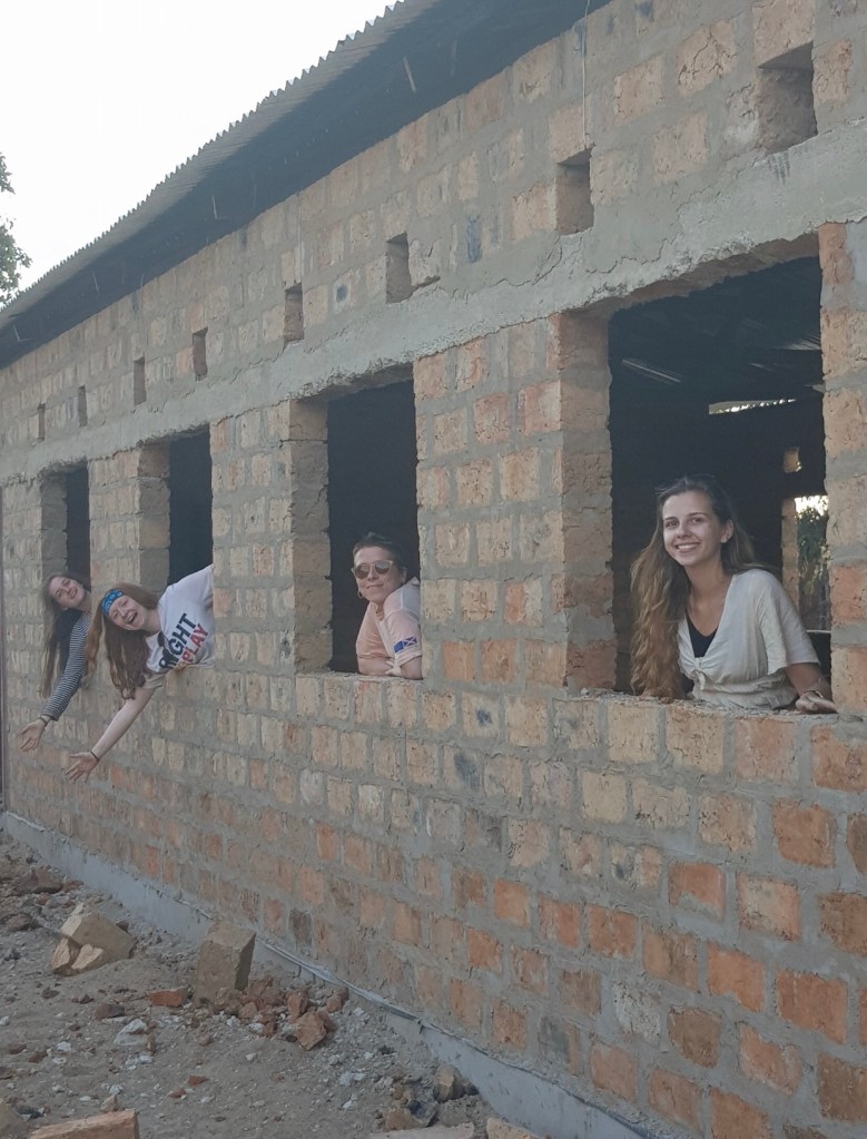 One of our team-mates, Fiona, trying her hand in brick-laying. (At least you tried Fi)‘Green Charcoal’- The women in the village made environment-friendly charcoal briquettes from old maize cobs and peanut shells. A lot of our time was spent with the children of the village. This picture shows Rosie’s kite-making efforts being put to shame by a young boy in the village who made his kite from plastic waste and still managed to make his fly. A team picture (minus Anna) showing the development of the building. One of the women from Chiseke Women’s Organisation joins us. A picture of part of the village. The President of Chiseke Women’s Organisation.A picture of the Church. We spent our Sunday mornings in the Church and it was one of the greatest parts of the experience. To pass the time we would go on walks. This picture was taken when we decided to walk to the farmers’ ground nut fields. Charity, a kind and zestful lady who was part of Chiseke, showed us how to make Africa cake. Charity was one of our dearest companions on the trip. Our village was a 4-6 hour bus journey away from the nearest town. This picture depicts our emotions on having to get up at 4 am to catch the bus, for it to not show up for hours. It is one of my fondest memories. Spirts were high on this day as we stood in the building for the first time.Perhaps one of the most exciting (and as we later learned, exhausting) parts of the experience; painting the building. Team-mate, Rosie, who designed the sign in its entirety, woke up at 6 am on the day of our Handover Ceremony to complete paining. She’s a trooper, so of course got it done. Our completed building, surrounded by everyone who worked on the project. A picture with Friends. Here we are surrounded by the women of Chiseke Women’s Organisation, the District Commissioner (centre) and our wonderful host, Mr Gerald Yungana, on the day the project was completed.