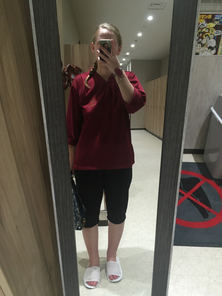 I placed my lonely backpack in my locker and changed into the provided pyjamas. At least they were clean, unlike the clothes I would have to put back on in the morning, despite wearing them the entirety of the previous 24 hour journey. Shoes are not allowed to be worn outside the changing room, and the slippers provided were cool and roomy – perfect for my swollen feet after the flight.