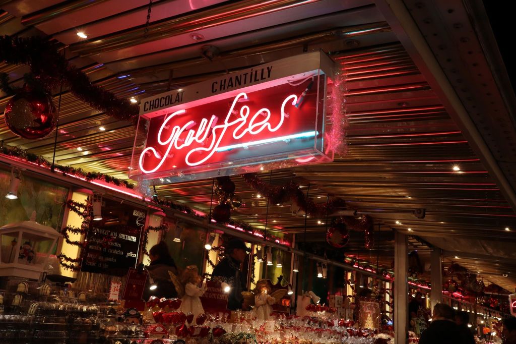 The stalls, many of which are German-style wooden chalet stalls, offer a variety of festive food, decorations and other trinkets. There is an abundance of mulled wine (vin chaud in French and Glühwein in German), coming in different flavours using different wines, fruits and spices. In terms of food, there is a lot to try, but Place Broglie is where it’s at. You’ll find beignets, waffles, crepes, Kougelhopf, gingerbread, petits gâteaux, bagels, Currywurst, and many more Christmas market staples. Place Broglie is also the place to try Alsatian cuisine, such as Spätzle and choucroute d’Alsace (Alsatian sauerkraut).