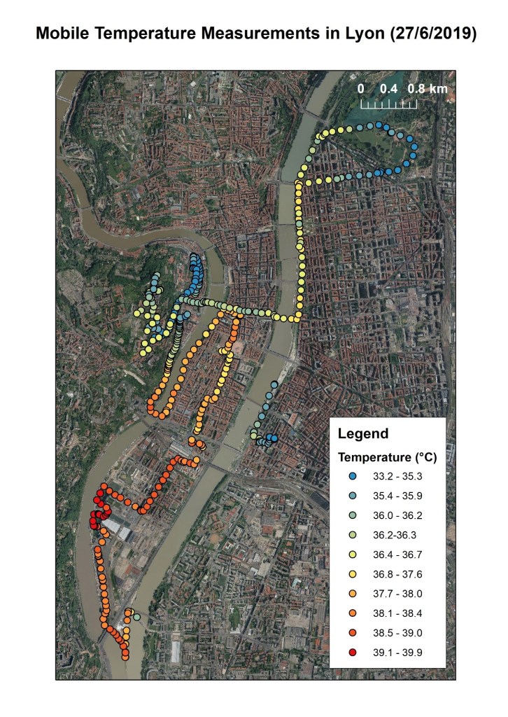 - Secondly, quantify the temperature profile of the City of Lyon, which would subsequently aid the identification of vulnerable populations around in the City, and hopefully influence public decision-making for the appropriate protection and adaptation measures.