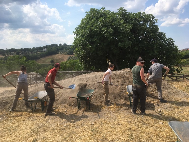 Aeclanum is a fantastic site an hour east of Naples, in view of Mount Vesuvius. Unlike the more infamous Roman cities of the region, Pompeii and Herculaneum, Aeclanum was not pristinely buried by the eruption in 79CE. This means that the site contains a much messier variety of remains than the snapshots provided by Pompeii. The finds ranged from Republican Italy through to the early Middle Ages. The excavation entailed two weeks of field experience that covered both the practicalities of using pick-axes, shovels and trowels to expose a 2nd century two-storey dwelling, and also the documentation of our finds. This included intricately plotting the exact locations of ‘contexts’, their drawing and photographing, and the thorough washing and labelling of all our finds.