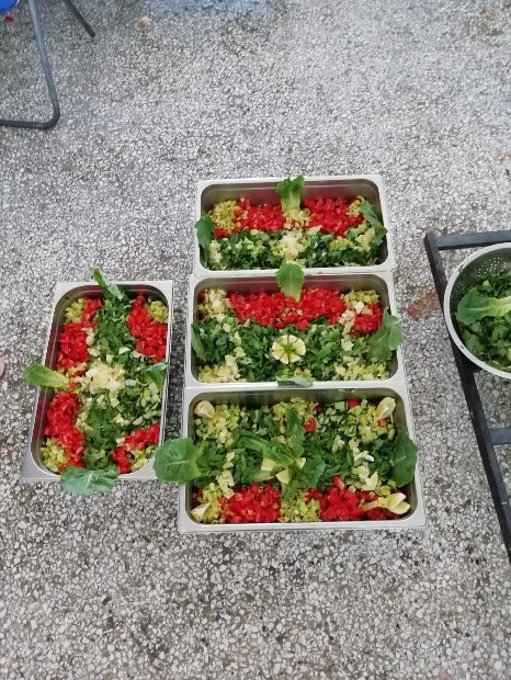 I spent six weeks volunteering with foodKIND in two refugee camps just outside of Athens. Having campaigned on refugee rights since high school, I wanted to experience the crisis first-hand. As a student of Social Anthropology, I was interested in the power that food has to facilitate social interactions and overcome cultural barriers. I was not disappointed. I experienced some of the most beautiful moments cooking with members of the community who shared ingredients (such as the tahini pictured above that was “made by Syrian hands”), recipes, tips and tricks with us. We chopped, laughed, cried (mostly while chopping tens of kilos of onions), and even helped each other with language skills (I left with a very limited knowledge of some phrases in Farsi and my friend now has the app Duolingo downloaded on his phone). Engaging in an act which is so universal has the power to break down some of the barriers which may previously have stood in the way. It breaks down the social/cultural walls that may be up between people from different backgrounds/ethnicities/genders and living situations.