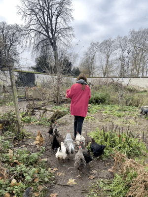 The society manages a chicken coup on site in one of the less used part of the garden, it is around 100m by 50m and houses around 15 chickens with a few young ones as well! The coupe also has an on-site compost site, the idea is that one or more people from the society sign up to go once a day and make sure the chickens are fed (locally sourced grain), watered (on site collected rainwater) and especially inside the coupe as they do tend to be crafty escape artists!